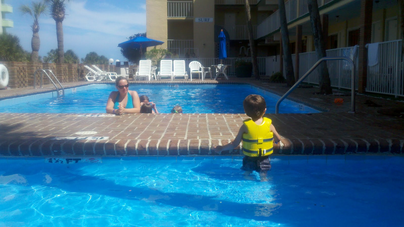 My Aunt Jill, Cousin Amy and her 2 kids were also at the beach for the weekend. They had a room in Myrtle Beach and their hotel had SEVERAL nice pools that the kiddos were able to play in. We spent about 7 hours going from their little water park, to the pool, to the beach, etc. We all had a lot of fun.