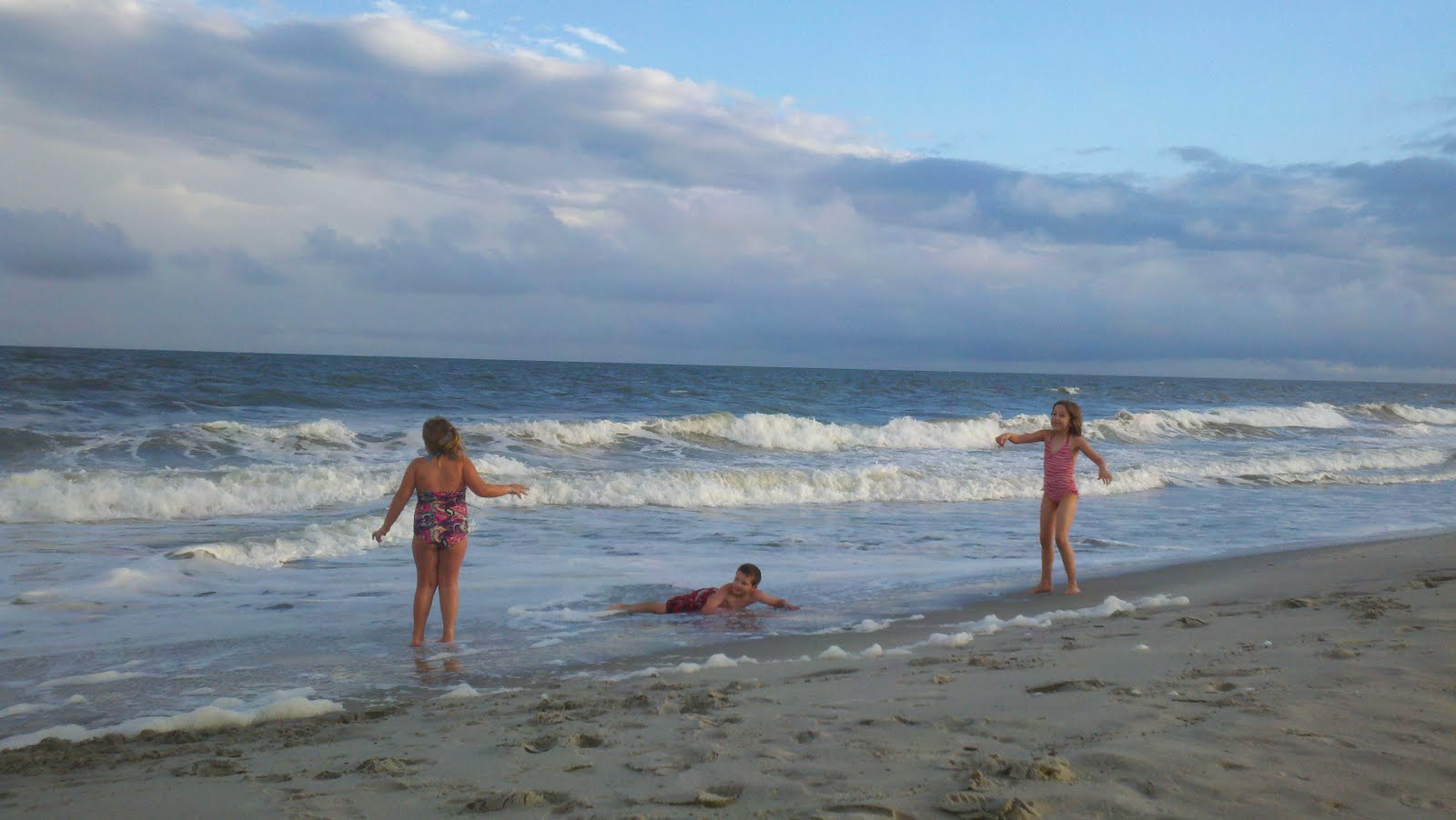 The kiddos had so much fun playing but the water was ROUGH. You can see all of the foam that the storm had kicked up. We didn't let them go any further than what you see in the picture.